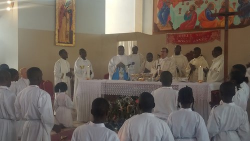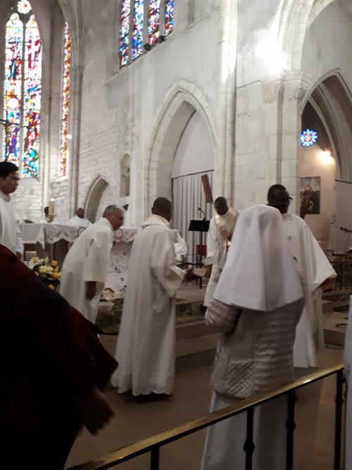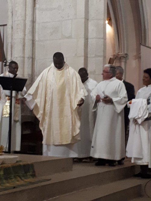 Le 1er janvier 2019, le père Emmanuel BIDZOGO, prêtre du diocèse et responsable de notre secteur, a célébré son Jubilé d’argent d’ordination sacerdotale (25 ans d’ordination) à Yaoundé en présence de Mgr Michel PANSARD qui a présidé la célébration d’action de grâce. Quelques paroissiens de Corbeil-Essonnes avaient fait le déplacement. L’archevêque de Yaoundé, Mgr Jean MBARGA avait aussi rejoint la fête et partagé la joie du jubilaire et des invités. Ci-jointes quelques photos souvenirs :