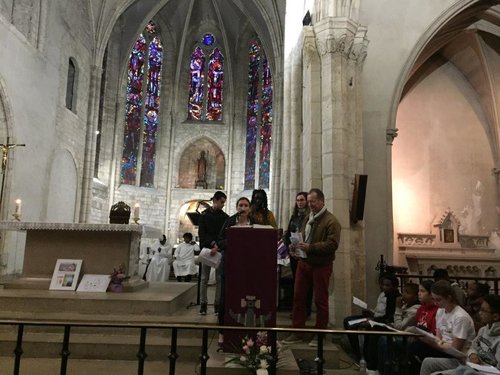 Des ateliers sur le thème de la prière furent proposés avant la célébration eucharistique, en partie animée par les jeunes, et dont l’homélie fut l’occasion, à l’invitation du Père Bernard Djafalo, d’entendre de très émouvants témoignages de jeunes sur la joie de prier. Tous furent très applaudis.