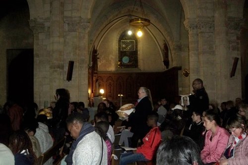 Les petits et grands (parents et grands-parents) étaient attendus à 17h à la cathédrale Saint Spire et furent accueillis par un goûter qui fit plaisir à tous ! Quant aux jeunes, ils étaient invités à se regrouper dès 14h30 pour une marche à partir de trois points différents du secteur pastoral : les paroisses St Germain, St Joseph et St Etienne jusqu’au collège Saint Spire, où ils ont participé à un temps festif accompagné d’un goûter, avant de se retrouver tous à 17h à St Spire.